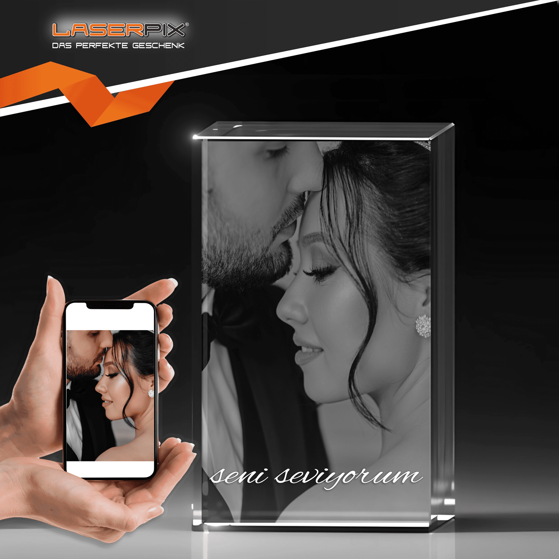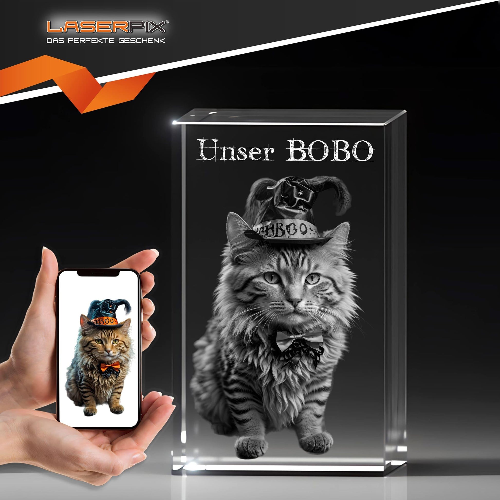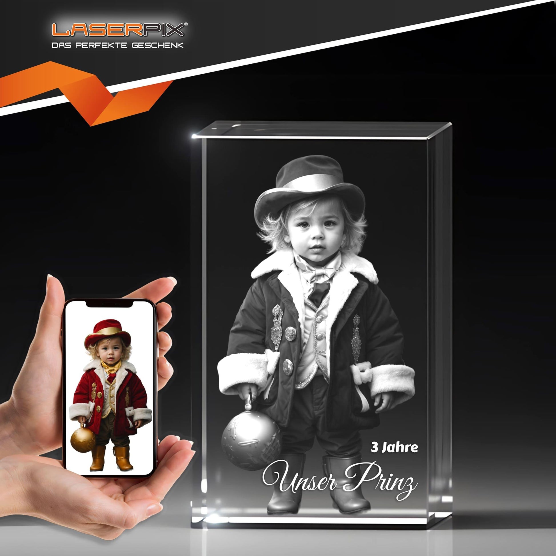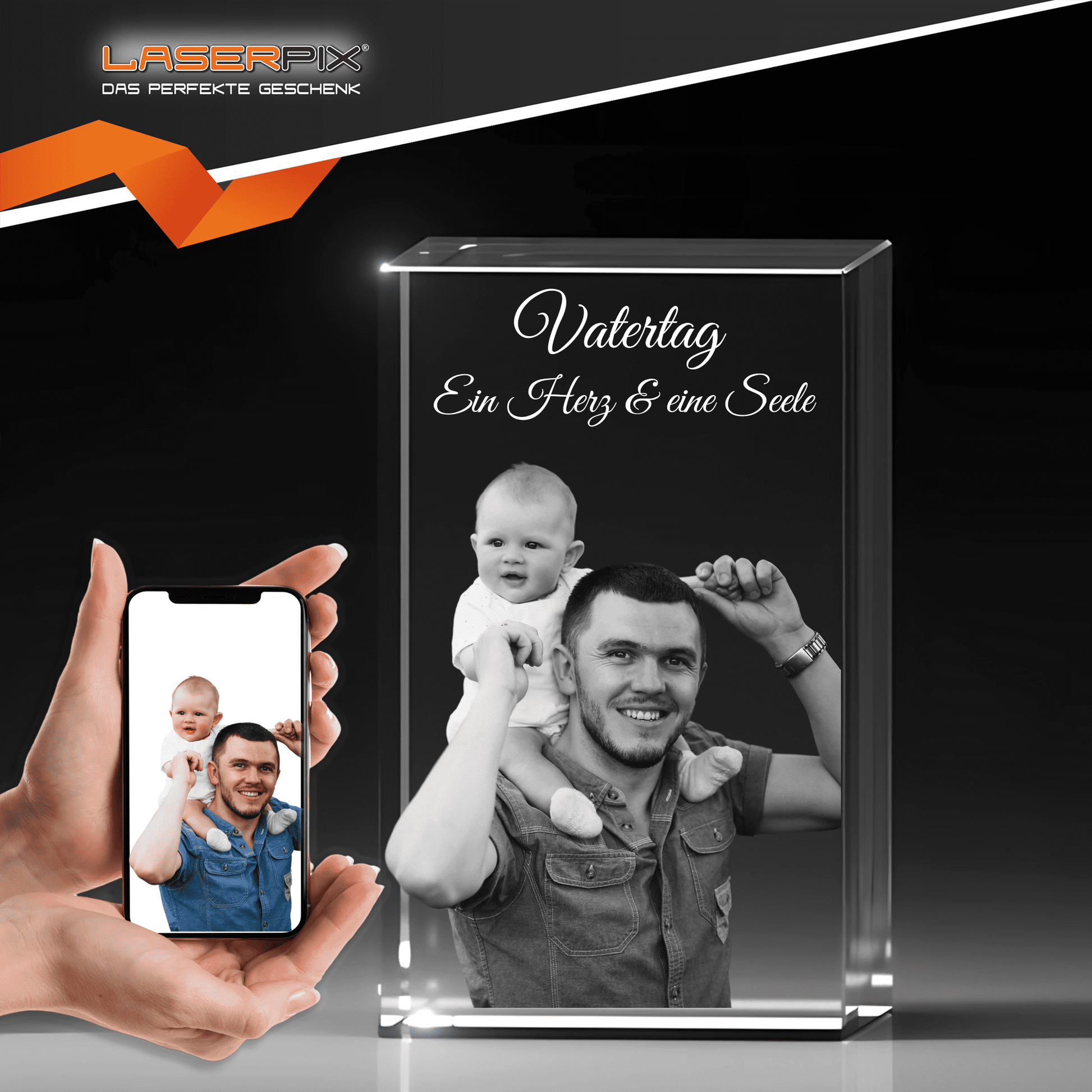 • LASERPIX verleiht Ihrem Glasobjekt eine unverwechselbare Tiefe und unterstreicht die emotionale Intensität Ihrer Erinnerungen mit klaren Linien und innovativer Technik.